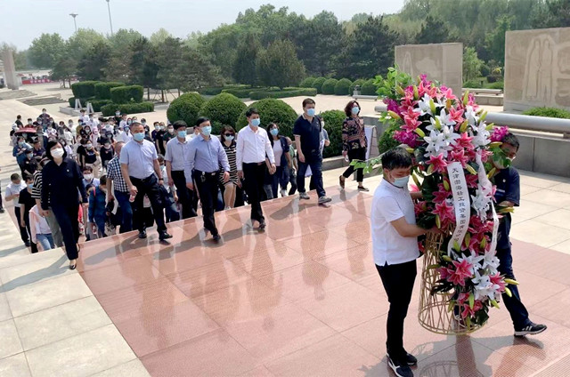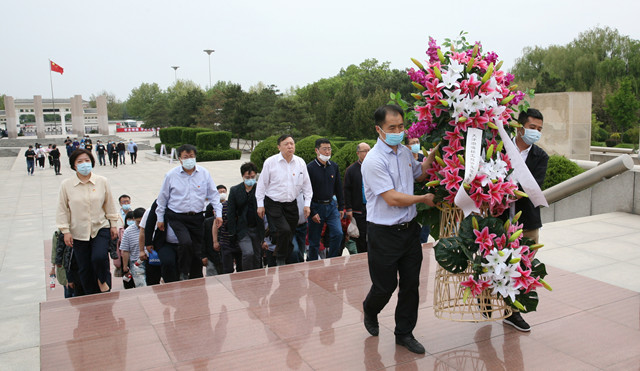 随后,全体人员怀着崇敬之情来到李大钊纪念馆,在李大钊塑像前敬献花篮鞠躬致敬。